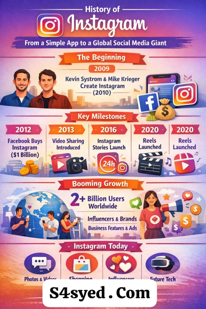 This article explains the complete history of Instagram—from its idea and launch to its growth, features, acquisition by Facebook (Meta), and its impact on modern digital culture.